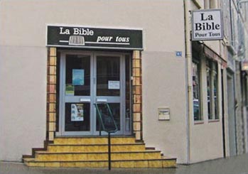 Après plusieurs années de fonctionnement, « La Maison de la Bible - France » a décidé, quand son gérant a pris sa retraite en 1997, de quitter ces locaux pour un emplacement plus proche du centre ville. Des membres de l'assemblée ont alors décidé de constituer une association dénommée « La Bible Pour Tous » pour y continuer bénévolement, la diffusion des Saintes Écritures et de littérature chrétienne. Trois grandes vitrines offrent au regard des passants, une sélection de livres selon diverses thématiques ainsi que des versets de la Bible renouvelés quotidiennement.